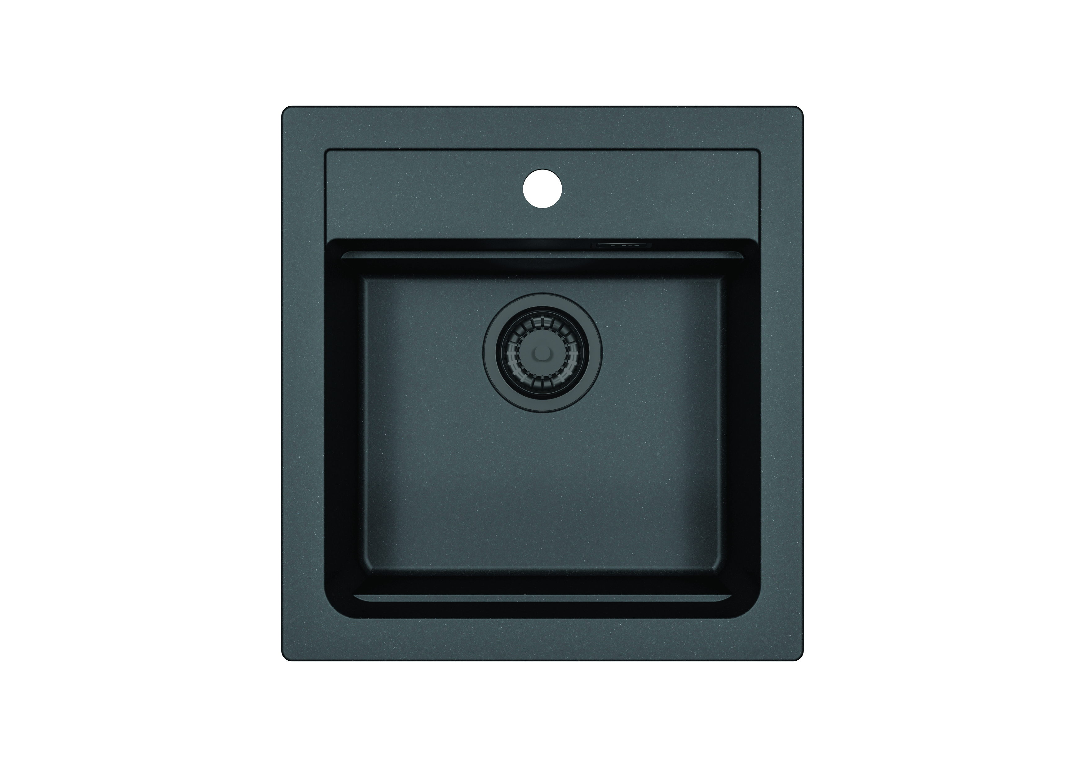Sítkový ventil v černém provedení 3 1/2 s přepadem, sifon pro úsporu místa s odbočkou na myčku